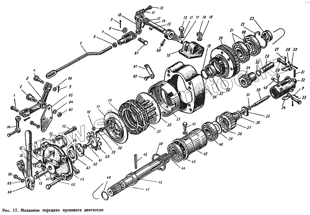 Каталог запасных частей к технике: ЮМЗ-6Л. Механизм передачи пускового двигателя