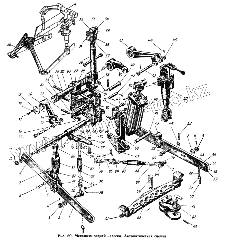 Каталог запасных частей к технике: ЮМЗ-6Л. Механизм задней навески. Автоматическая сцепка