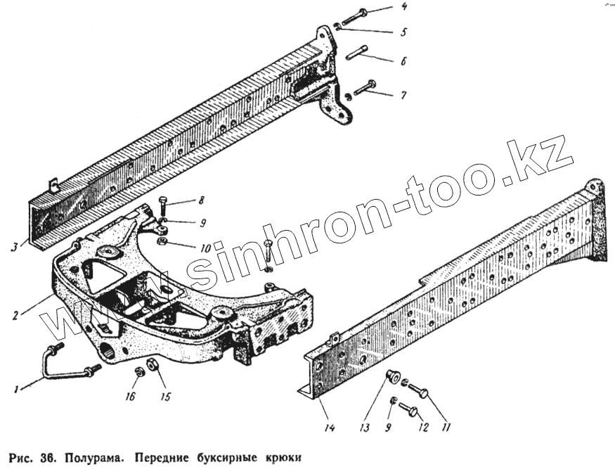 Каталог запасных частей к технике: ЮМЗ-6Л. Полурама. Передние буксирные крюки