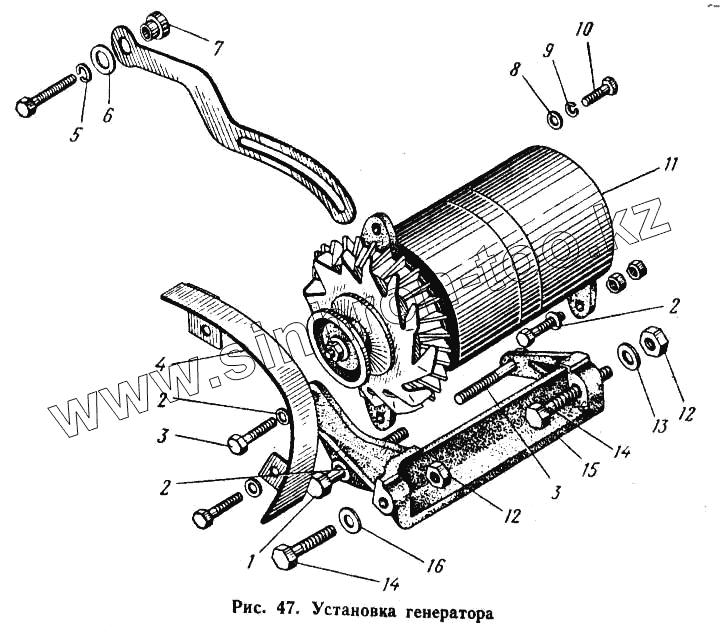 Каталог запасных частей к технике: ЮМЗ-6Л. Установка генератора