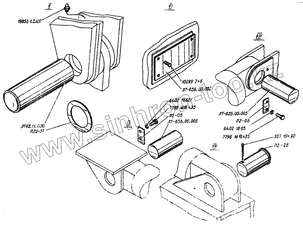 Каталог запасных частей к технике: Алтайлесмаш ЛТ-65Б. Шарнирные соединения стрелы