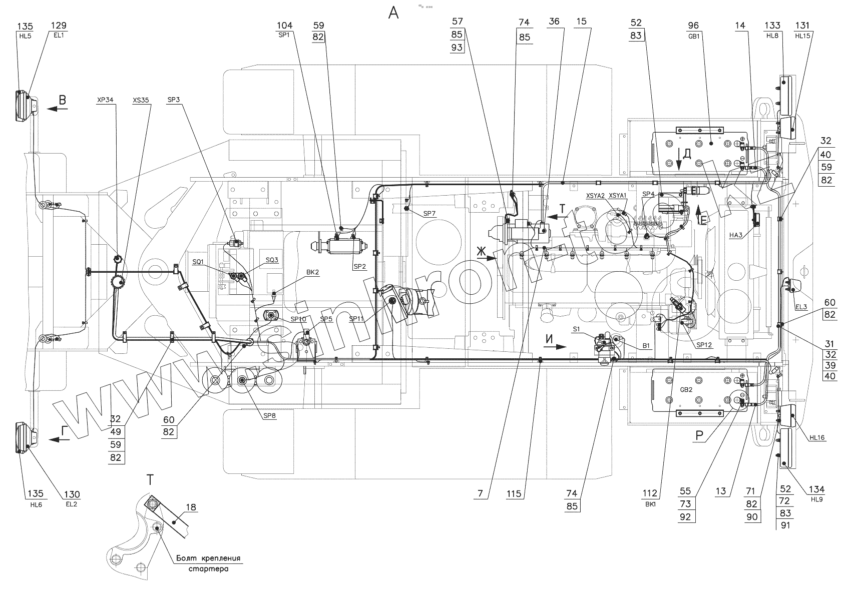 Каталог запасных частей к технике: Амкодор 352C. 342С4.37.00.000 Электросистема