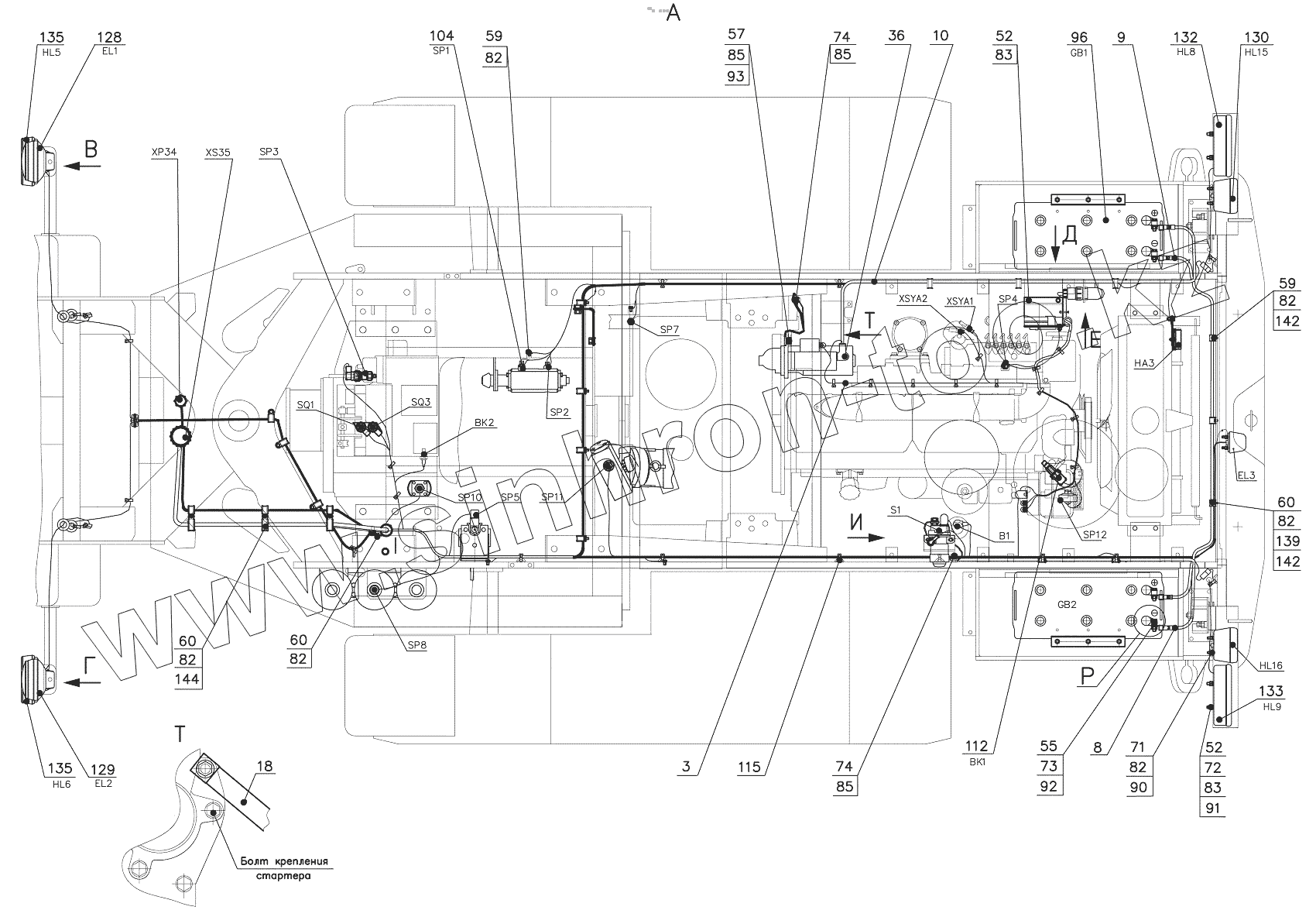 Каталог запасных частей к технике: Амкодор 352C. 342В.11.00.000Т Электросистема
