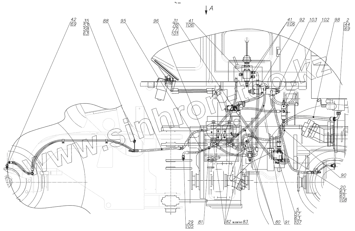 Каталог запасных частей к технике: Амкодор 352C. 352.35.05.000 Гидросистема тормозов