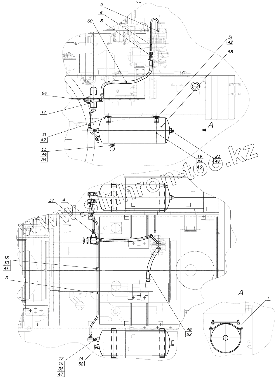 Каталог запасных частей к технике: Амкодор 352C. 352С.18.00.000 Пневмосистема