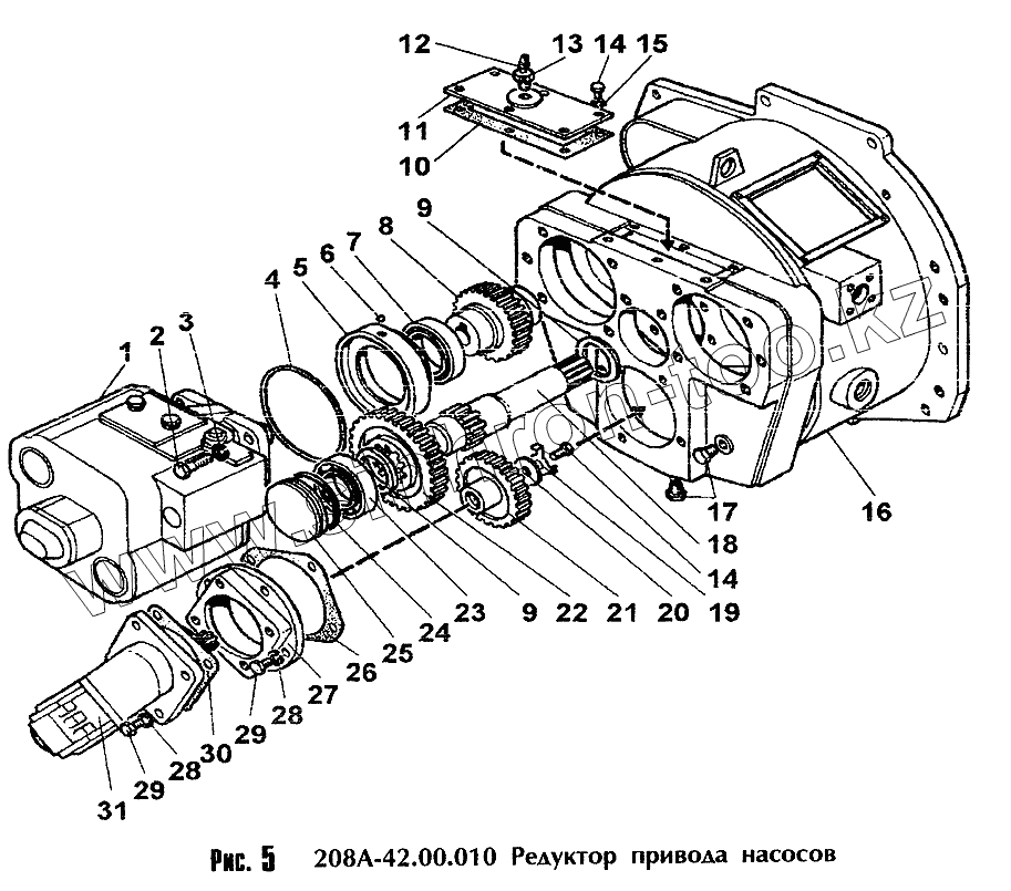 Каталог запасных частей к технике: Амкодор-208А. Редуктор привода насосов