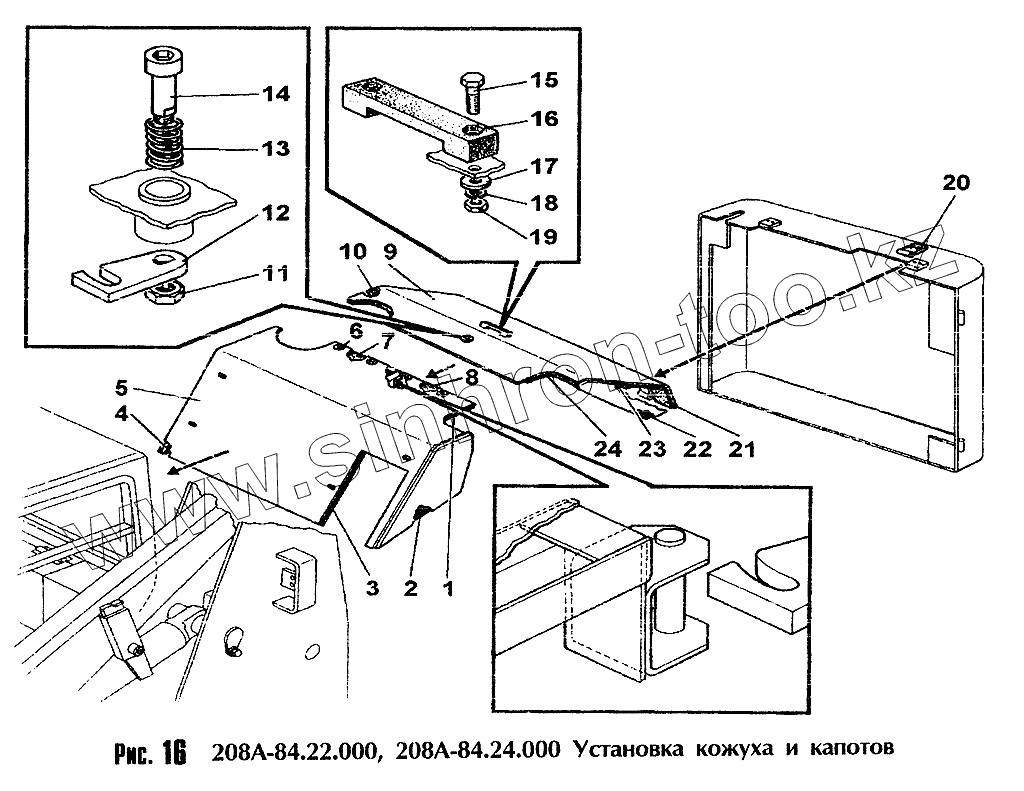 Каталог запасных частей к технике: Амкодор-208А. Установка кожуха и капотов