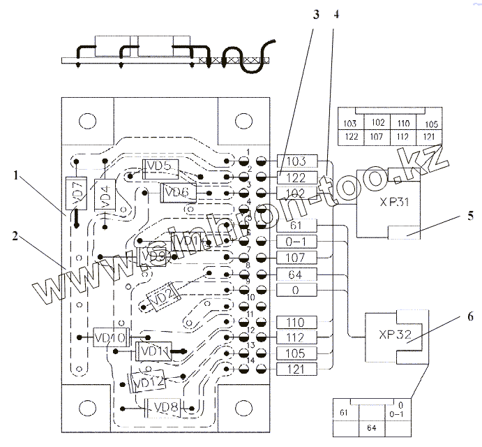 Каталог запасных частей к технике: Амкодор-208В. 208А-50.18.500 Панель диодов