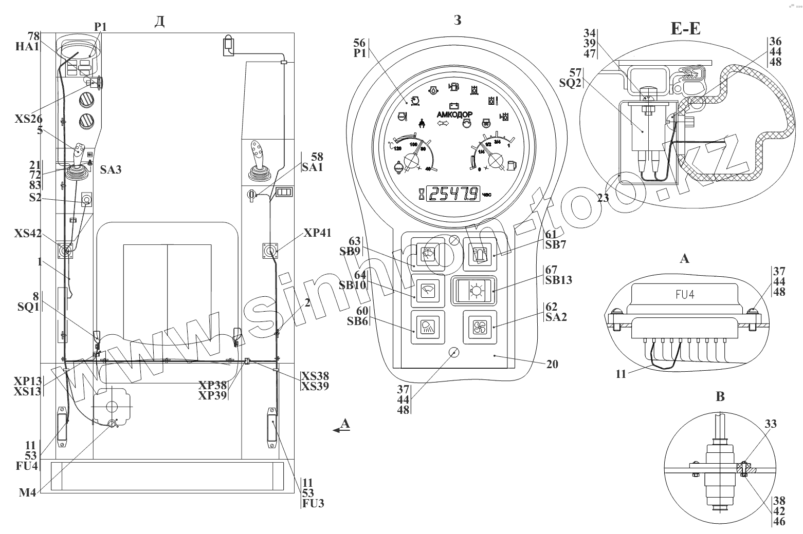 Каталог запасных частей к технике: Амкодор-211. Электросистема кабины 211.50.18.000