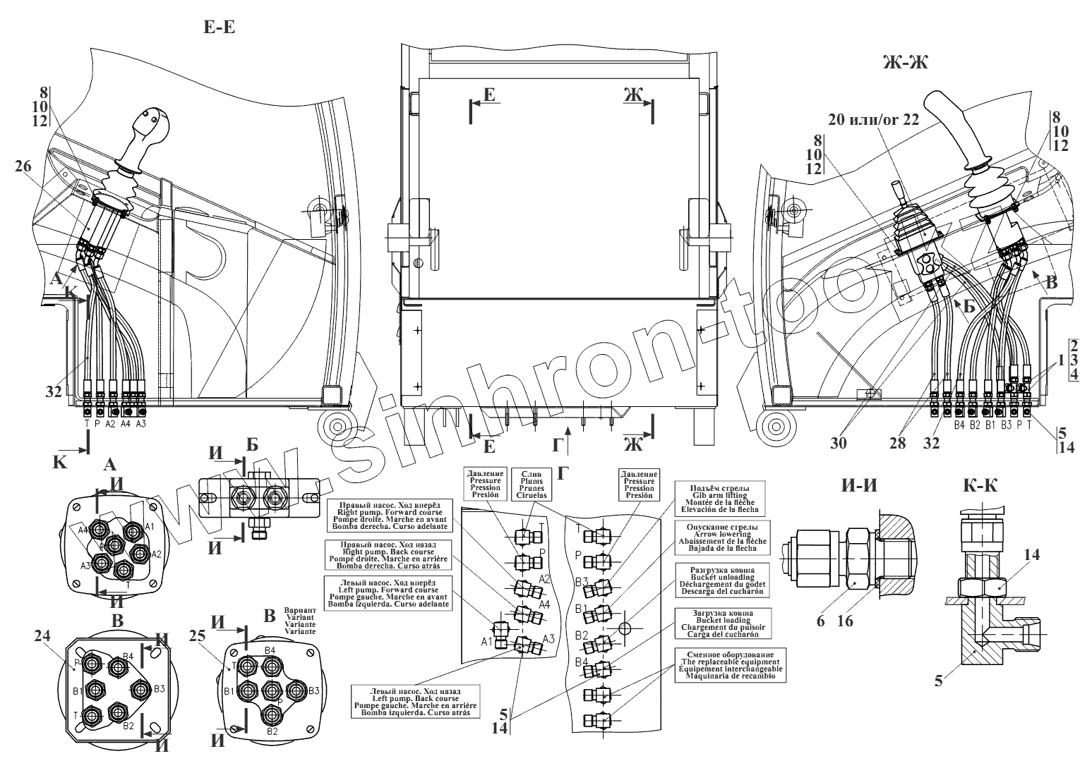 Гидросистема погрузочного оборудования 211.45.05.000, 211.45.05.000-01, 211.45.05.000-02