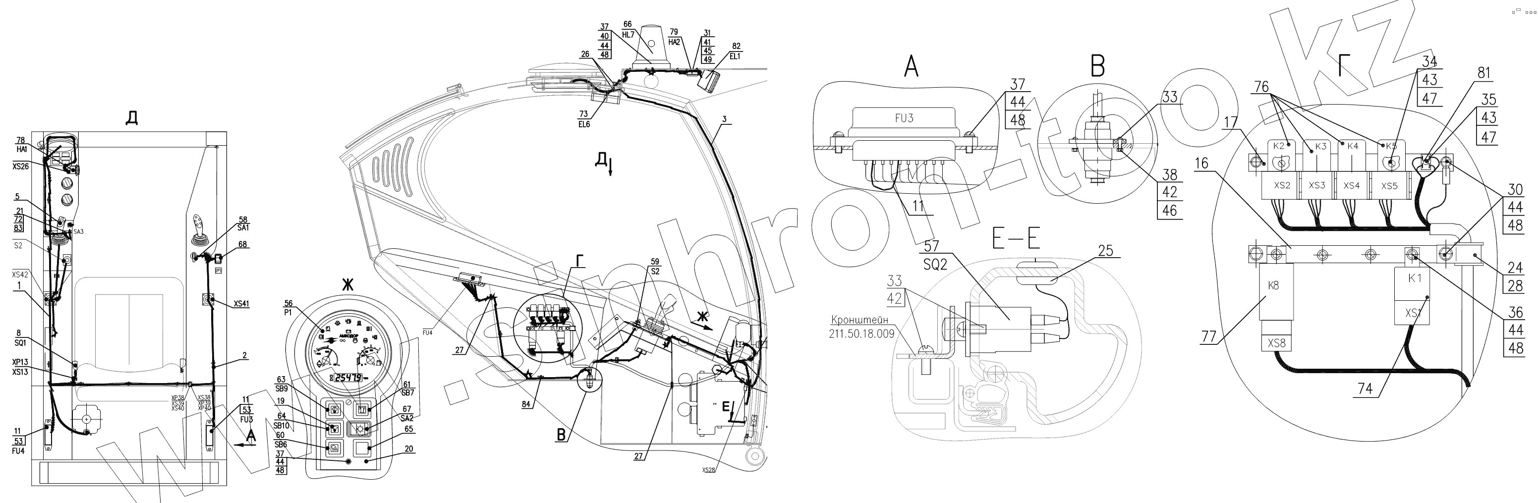 Каталог запасных частей к технике: Амкодор-211Е. Электросистема кабины 211Е.50.18.000