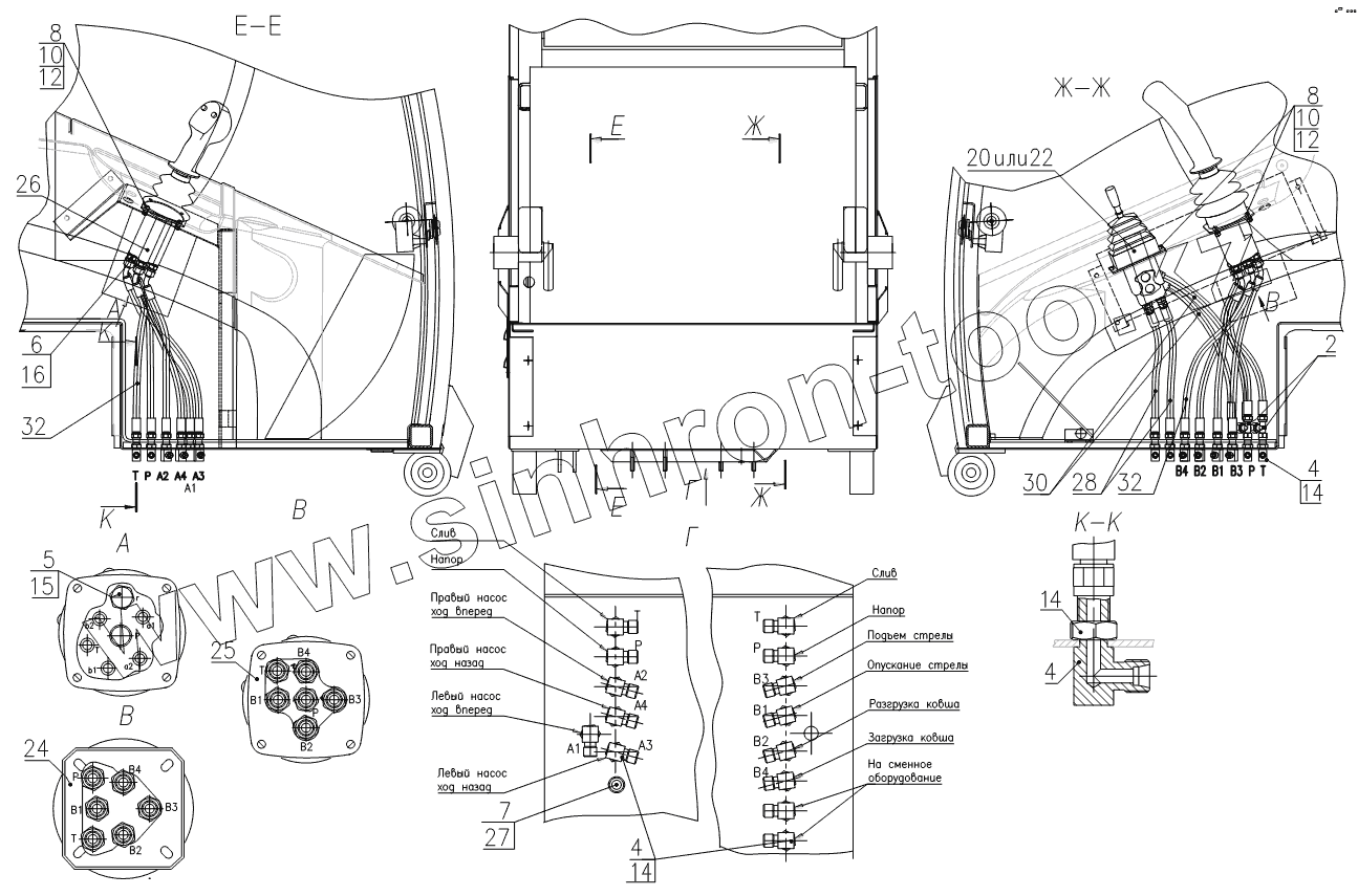 Гидросистема рабочего оборудования 211E.47.05.000, 211E.47.05.000-Т