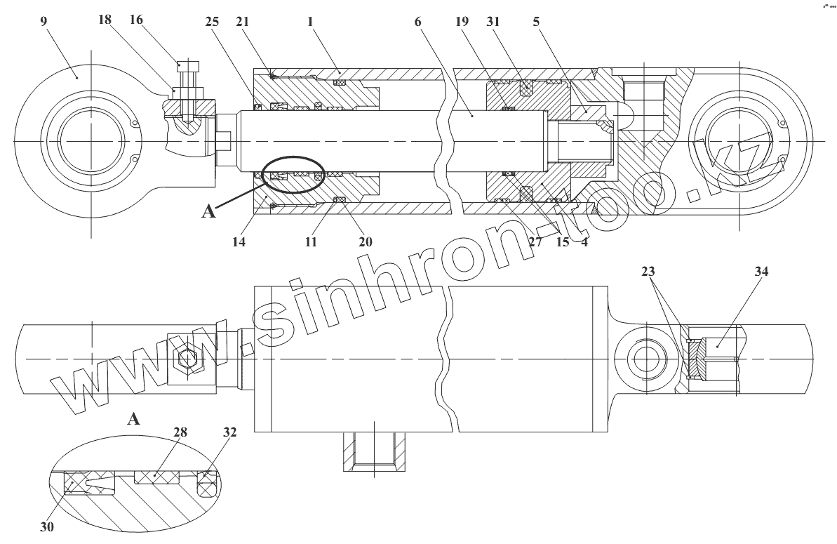 Каталог запасных частей к технике: Амкодор-211Е. Гидроцилиндр 208В.70.12.200