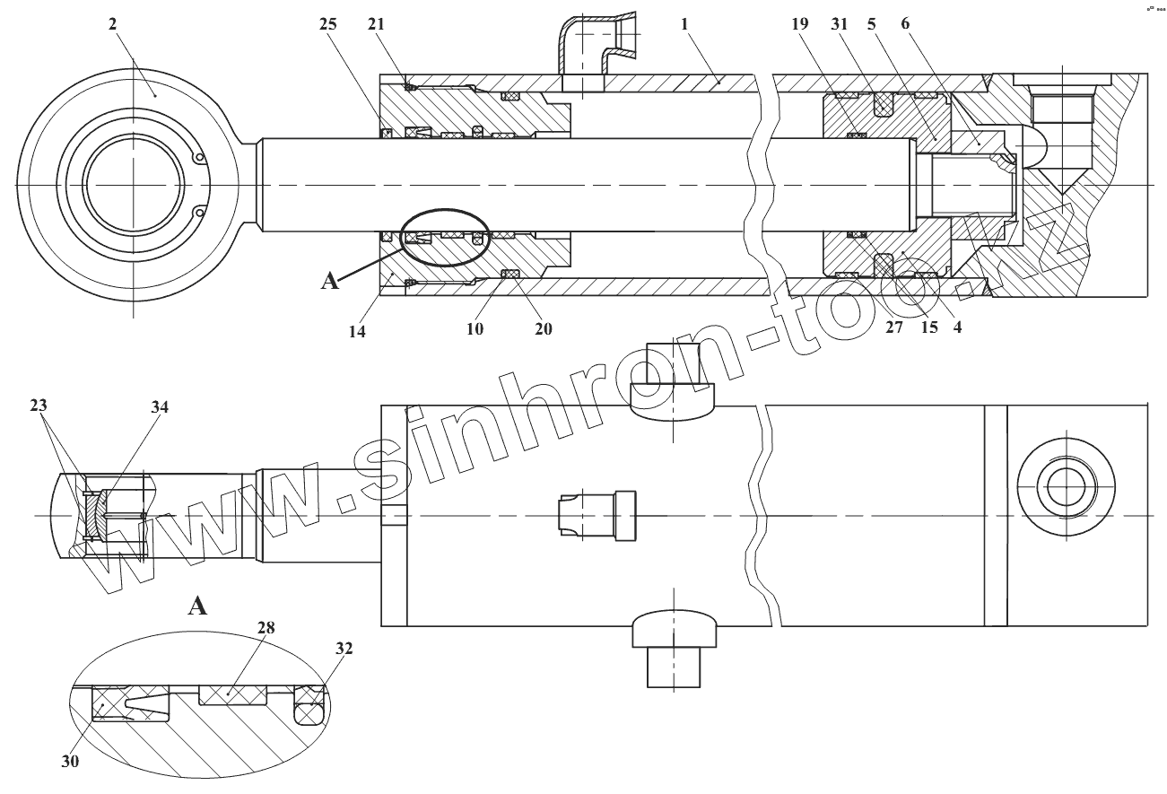 Каталог запасных частей к технике: Амкодор-211Е. Гидроцилиндр 208В.70.12.300