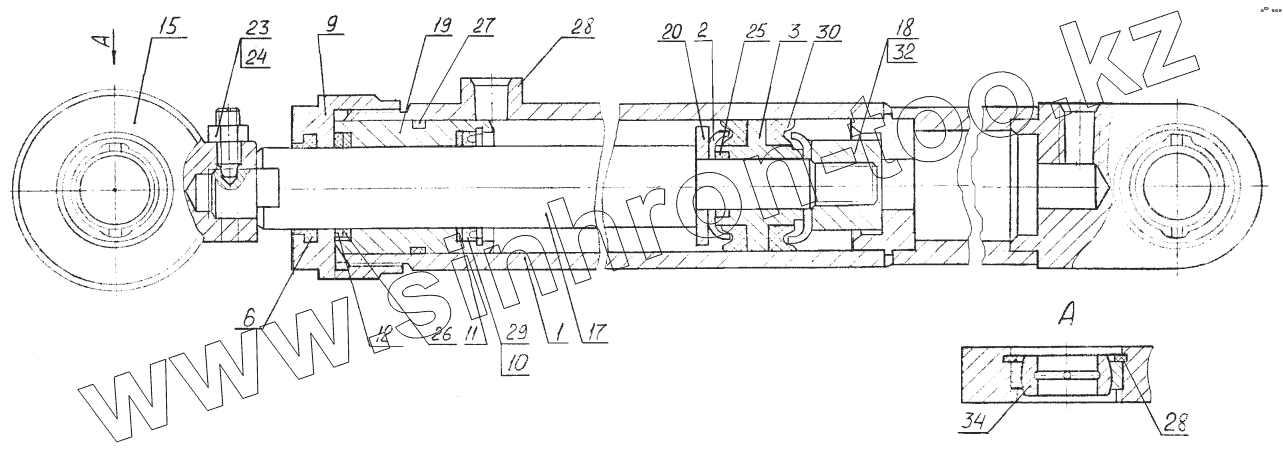 Каталог запасных частей к технике: Амкодор-211Е. Гидроцилиндр ДЗ-133.24.03.000