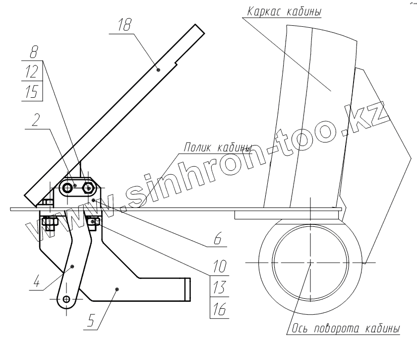 Установка опрокидывающего механизма кабины 211E.60.00.000