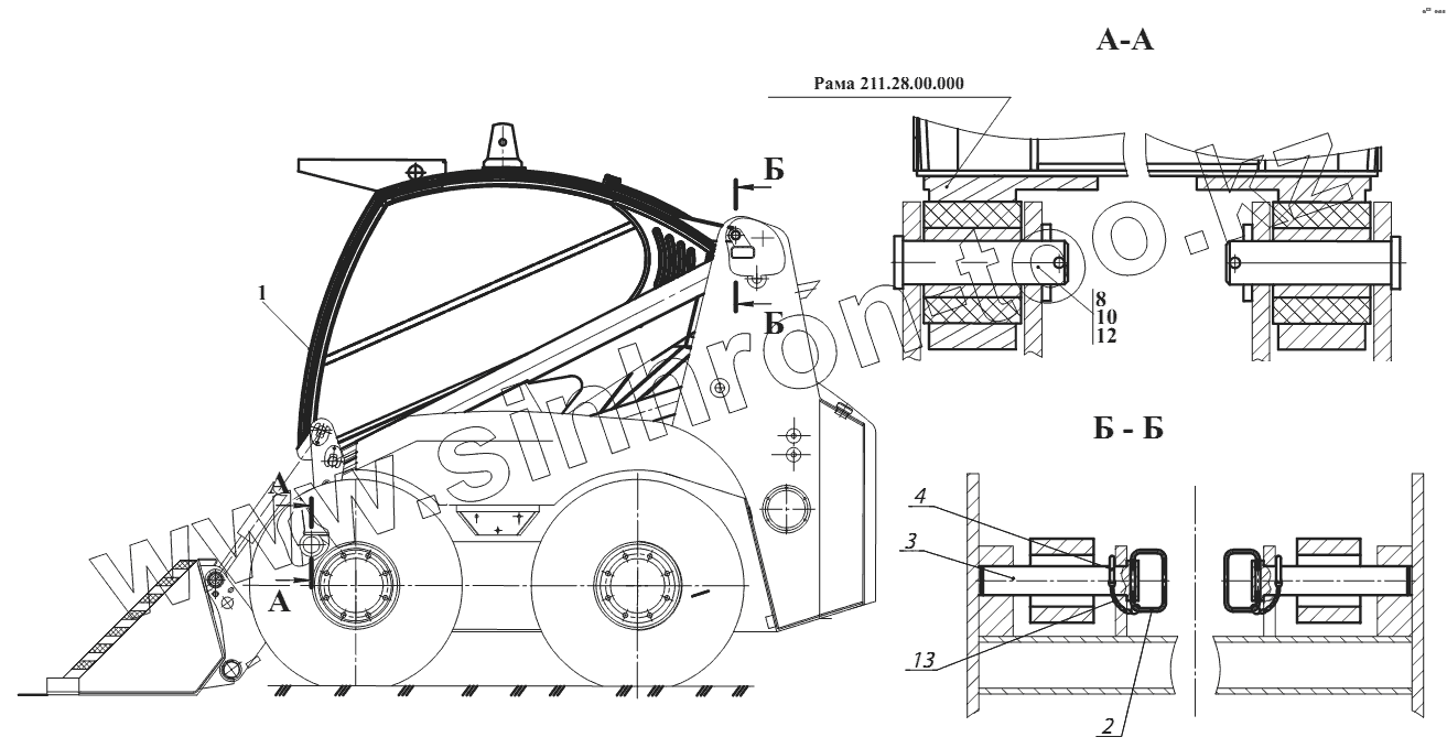 Каталог запасных частей к технике: Амкодор-211Е. Установка кабины 211.50.00.000