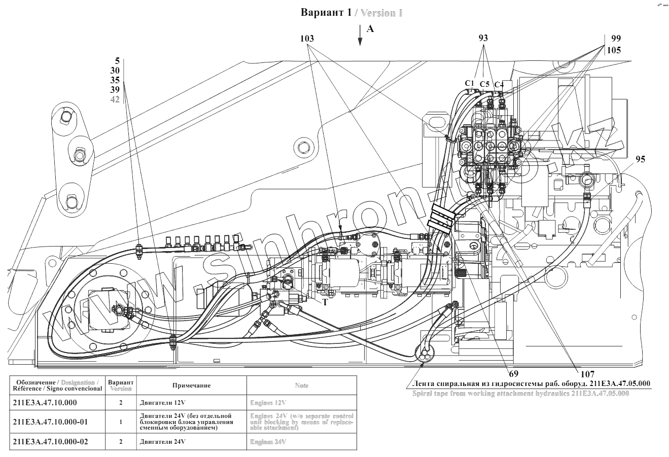 Каталог запасных частей к технике: Амкодор-211Е. Гидросистема управления 211Е3А.47.10.000