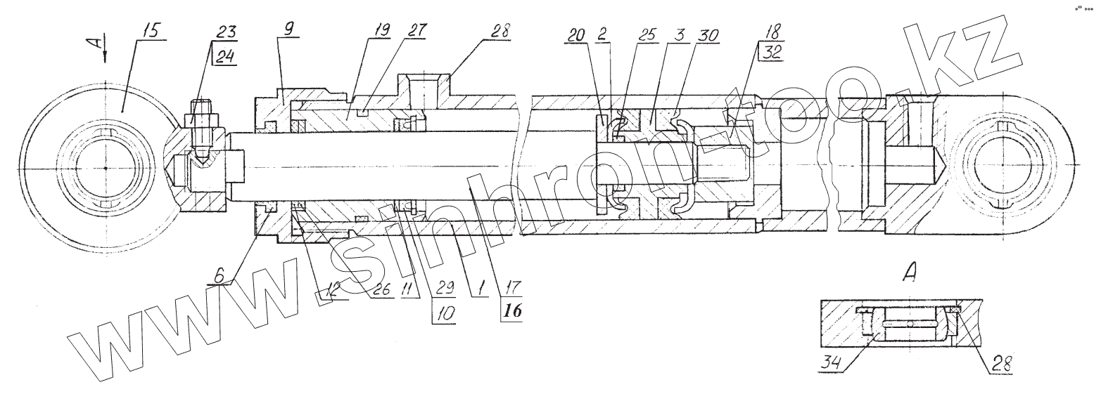 Каталог запасных частей к технике: Амкодор-211Е. Гидроцилиндр ДЭ-224А.45.16.000