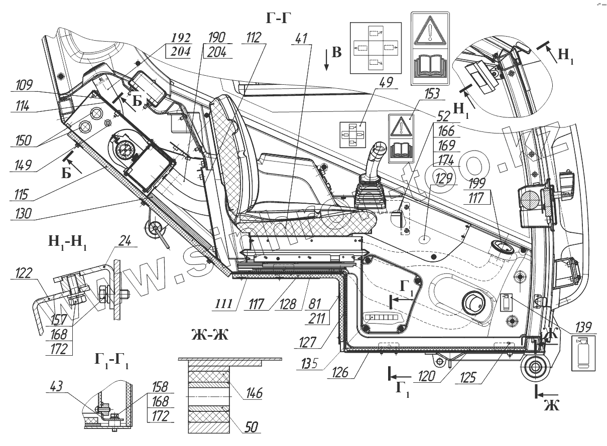 Каталог запасных частей к технике: Амкодор-211Е. Кабина 211М.50.00.010