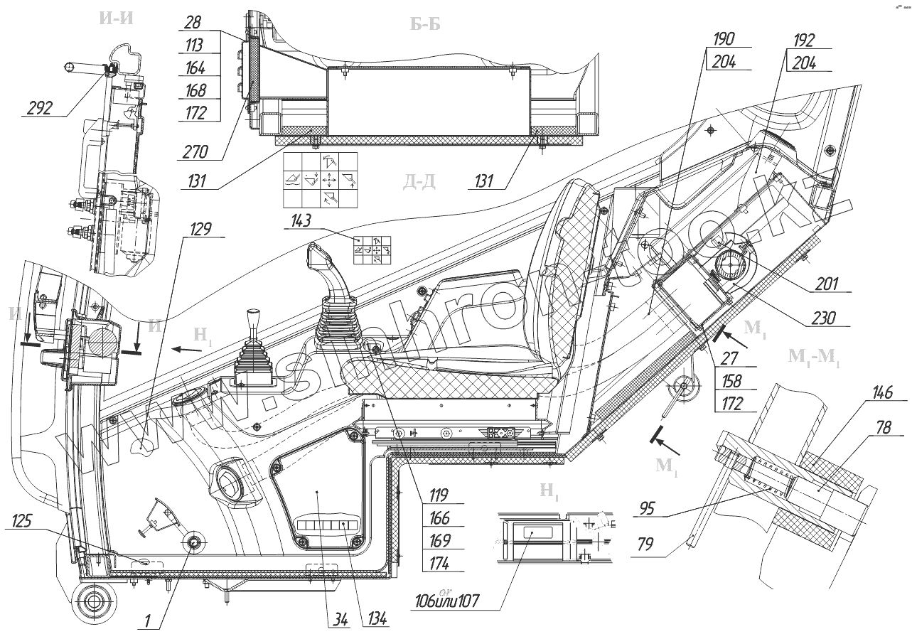 Каталог запасных частей к технике: Амкодор-211Е. Кабина 211М.50.00.010