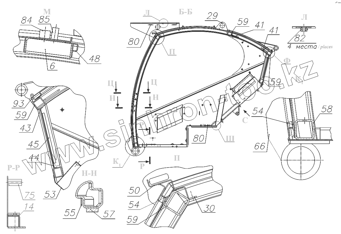 Каталог запасных частей к технике: Амкодор-211Е. Каркас 211М.50.01.000-Б