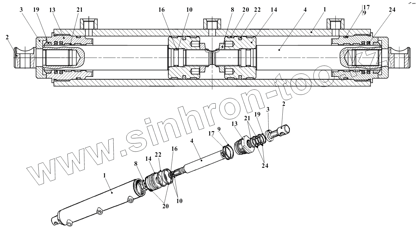 Каталог запасных частей к технике: Амкодор-211nev. Гидроцилиндр сцепки 208А-45.05.600