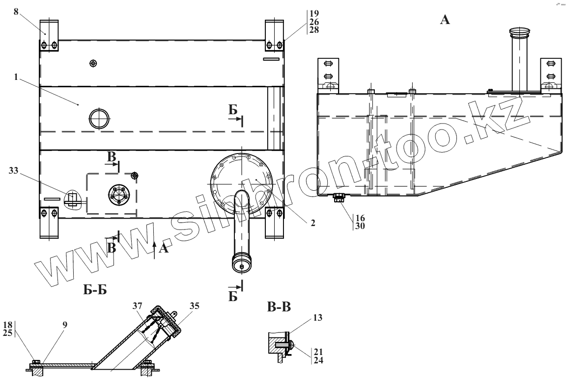 Каталог запасных частей к технике: Амкодор-2243В. Бак 2661.02.01.000-Б
