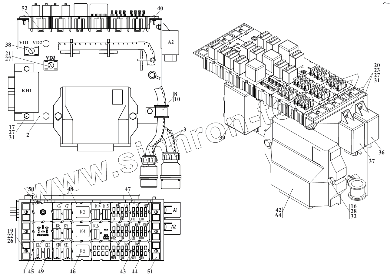 Каталог запасных частей к технике: Амкодор-320. Блок коммутации 320.38.01.000