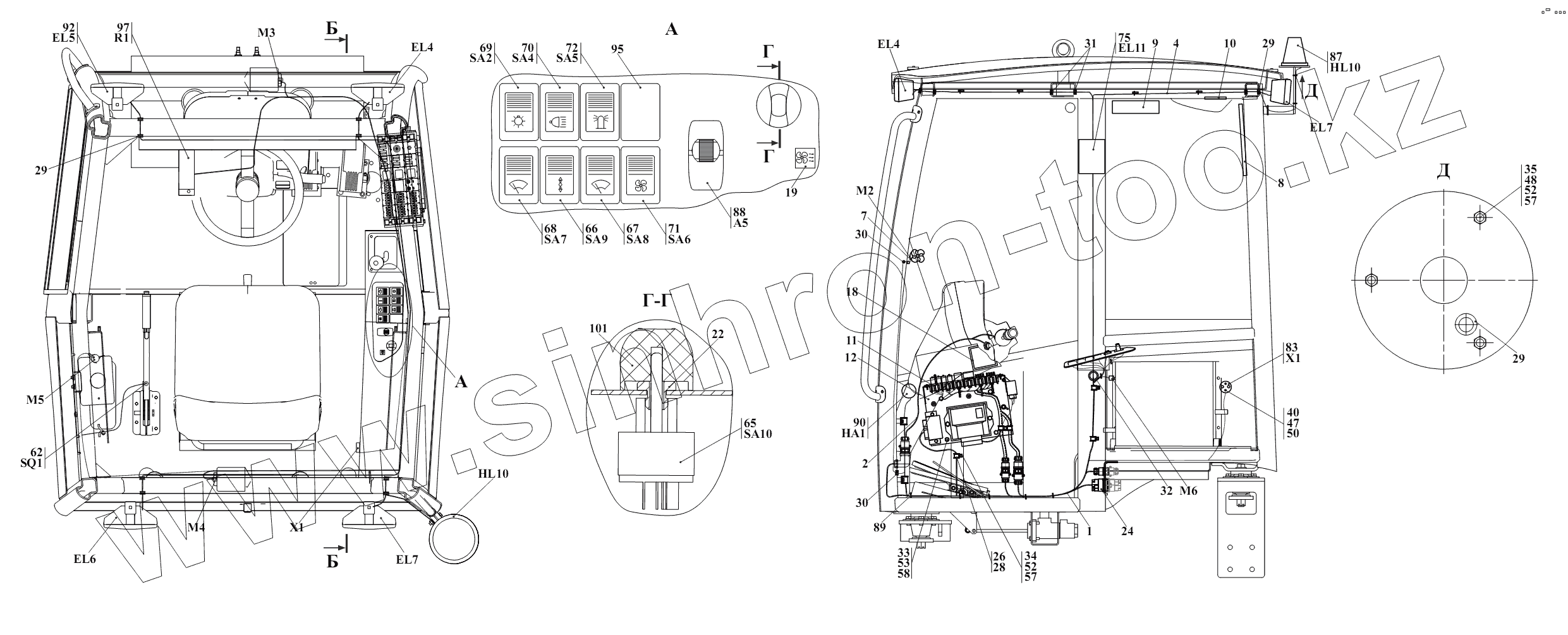 Каталог запасных частей к технике: Амкодор-320. Электросистема кабины 320.38.00.000
