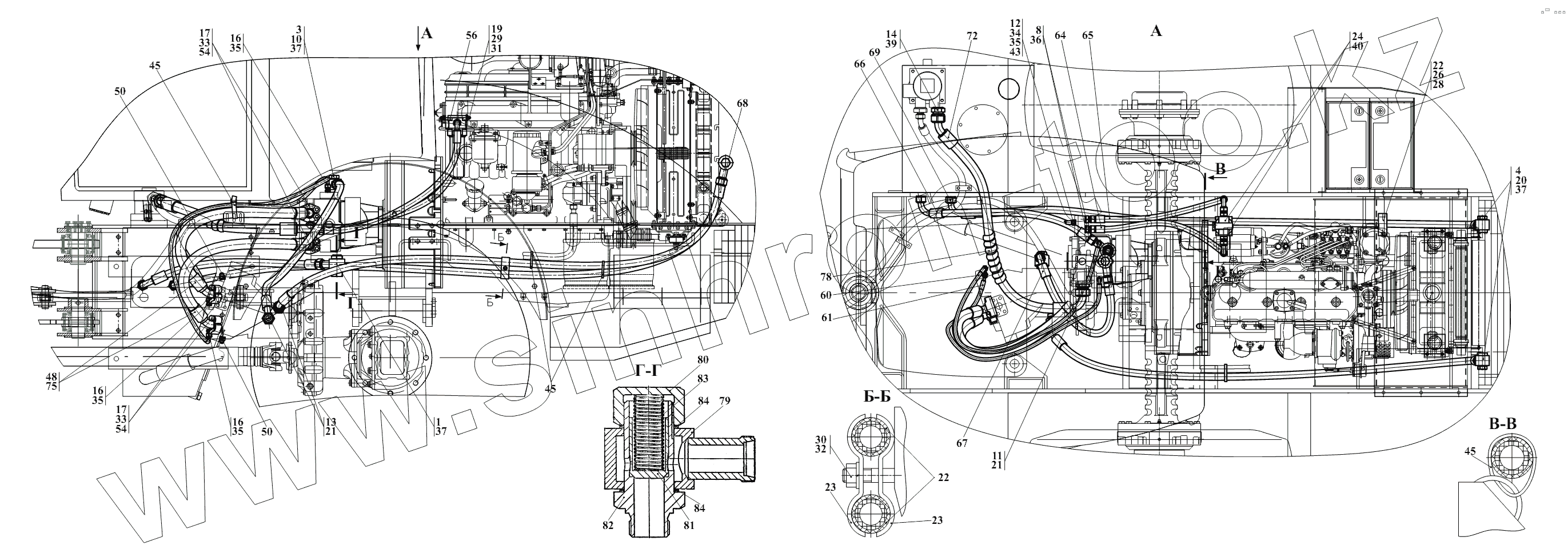 Каталог запасных частей к технике: Амкодор-320. Гидросистема хода 320.19.50.000