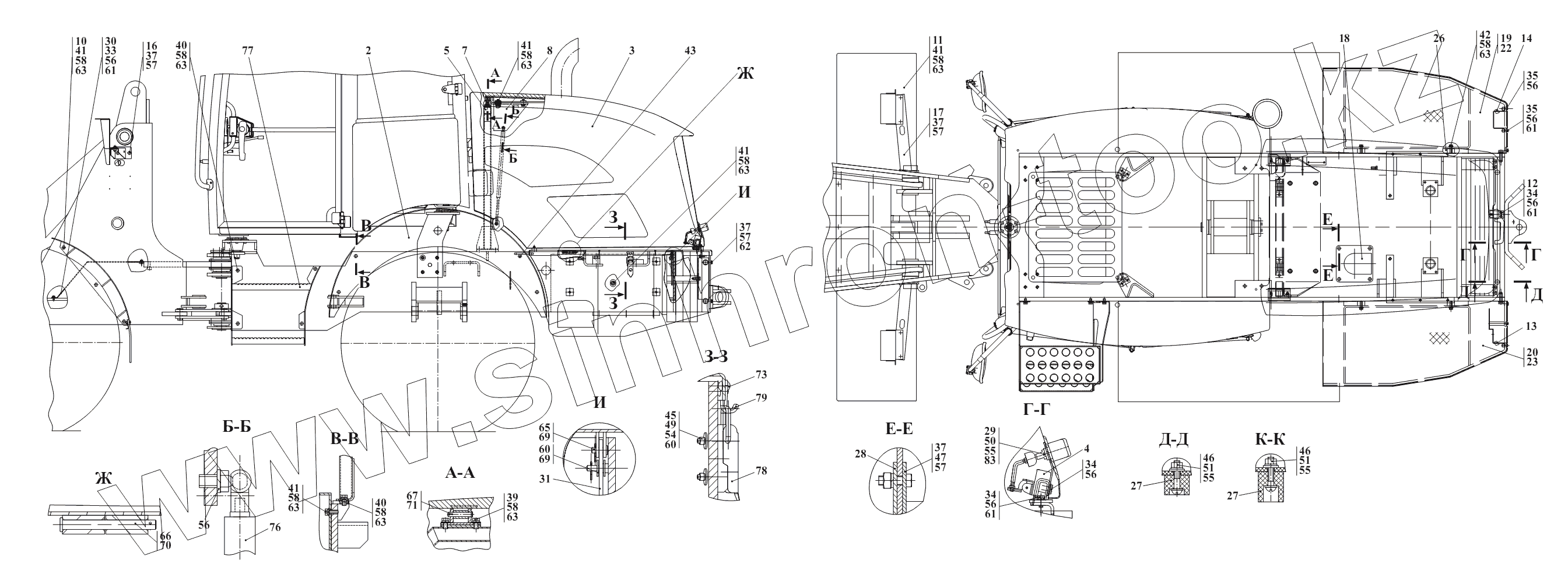 Каталог запасных частей к технике: Амкодор-320. Облицовка 320.84.00.000