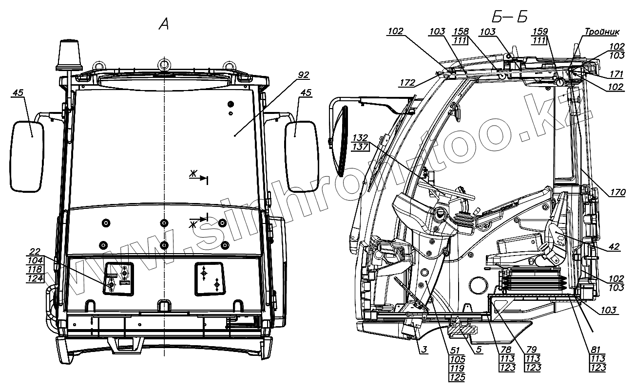 Каталог запасных частей к технике: Амкодор-320СЕ. 320СЕ.50.00.010-Б Кабина