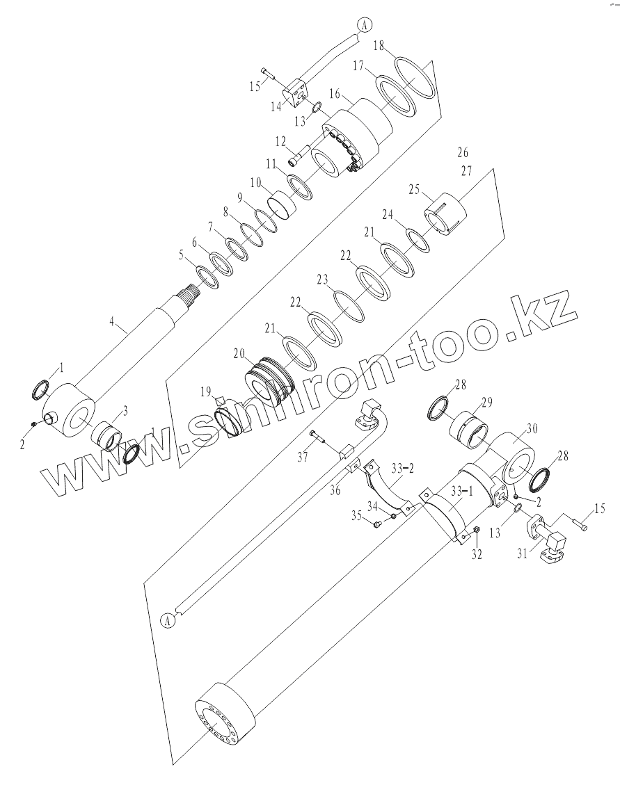 Каталог запасных частей к технике: Амкодор-3225. Цилиндр ковшовый W-17-00053