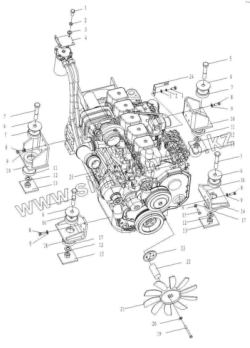 Каталог запасных частей к технике: Амкодор-3225. Установка двигателя