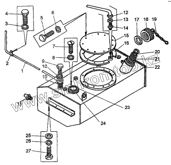 Каталог запасных частей к технике: Амкодор-327 (ТО-18Д). Бак топливный