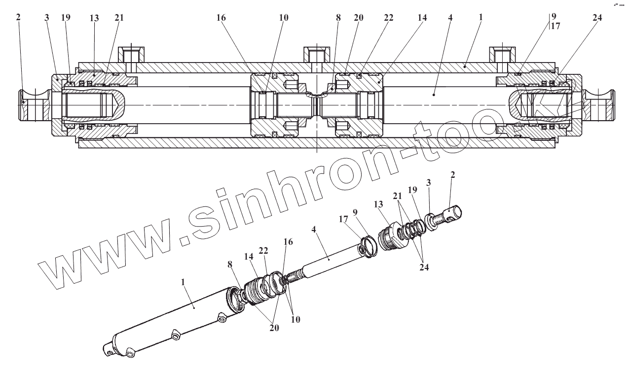 Каталог запасных частей к технике: Амкодор-332B, 332B4. Гидроцилиндр 208А-45.05.600
