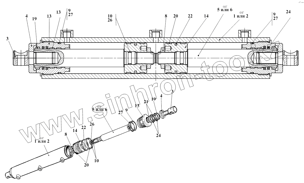 Каталог запасных частей к технике: Амкодор-332С4. Гидроцилиндр 208А.45.05.600