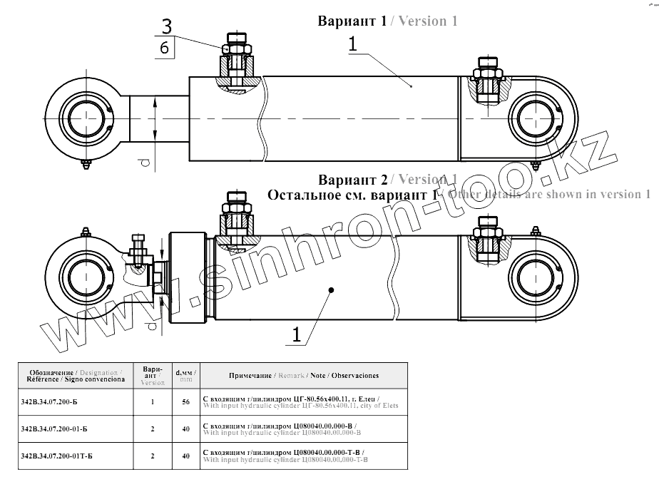 Каталог запасных частей к технике: Амкодор-332С4. Гидроцилиндр 342В.34.07.200-Б