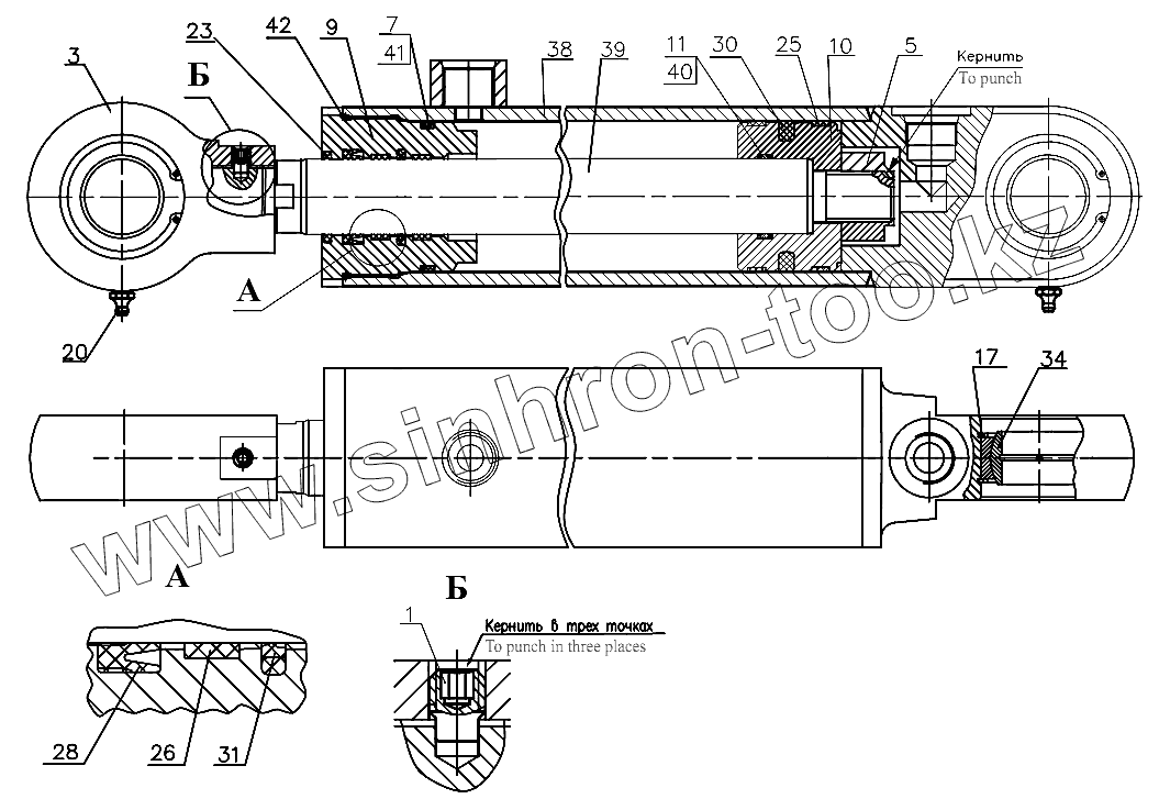 Каталог запасных частей к технике: Амкодор-332С4. Гидроцилиндр Ц080040.00.000-В