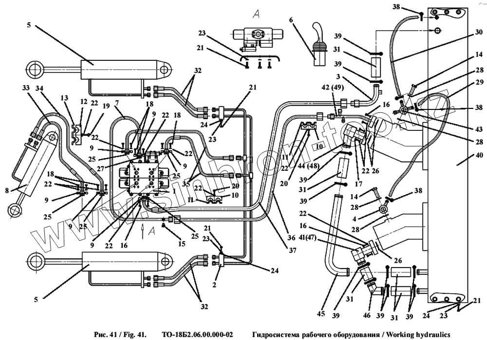 Каталог запасных частей к технике: Амкодор-333В (ТО-18Б3). Гидросистема рабочего оборудования