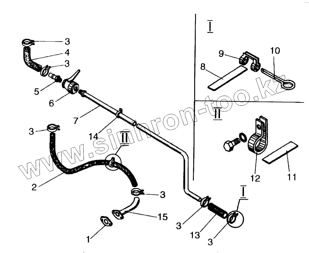 Каталог запасных частей к технике: Амкодор-342 (ТО-28). Установка трубопроводов отопителя