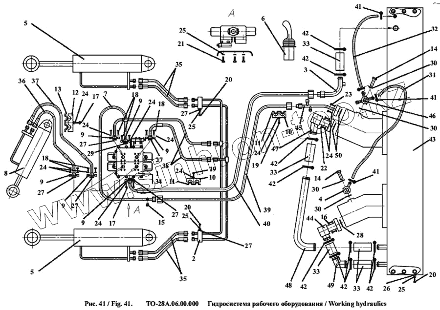 Каталог запасных частей к технике: Амкодор-342А (ТО-28А). Гидросистема рабочего оборудования