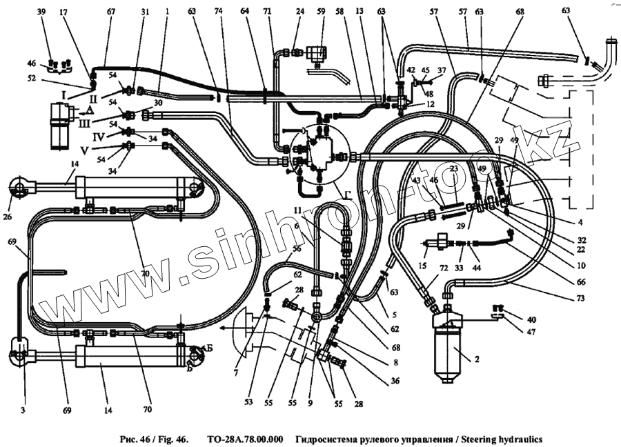 Каталог запасных частей к технике: Амкодор-342А (ТО-28А). Гидросистема рулевого управления