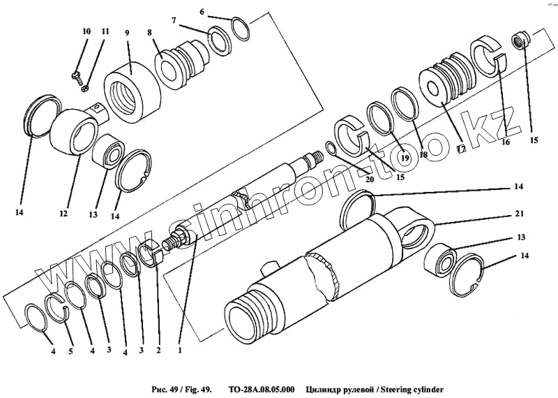 Каталог запасных частей к технике: Амкодор-342А (ТО-28А). Цилиндр рулевой