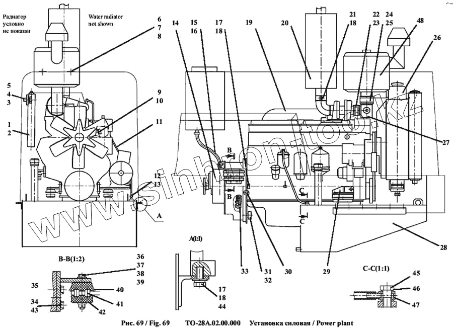 Каталог запасных частей к технике: Амкодор-342А (ТО-28А). Установка силовая