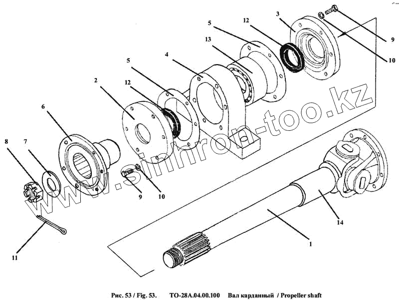 Каталог запасных частей к технике: Амкодор-342А (ТО-28А). Вал карданный