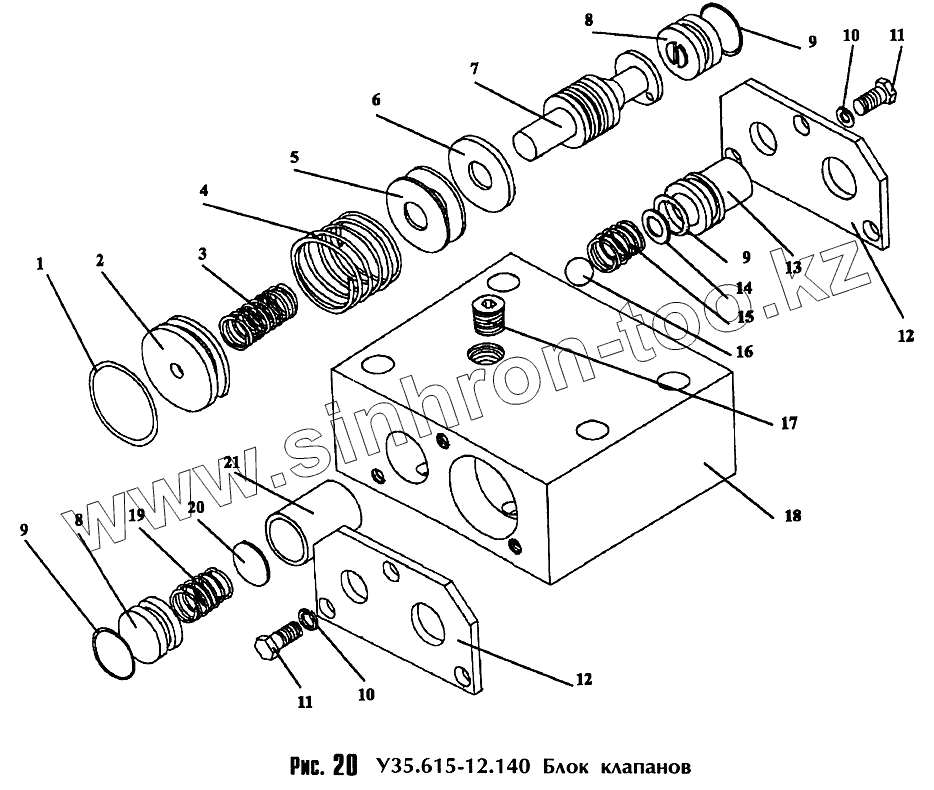 Каталог запасных частей к технике: Амкодор-342С. Блок клапанов У35.615-12.140