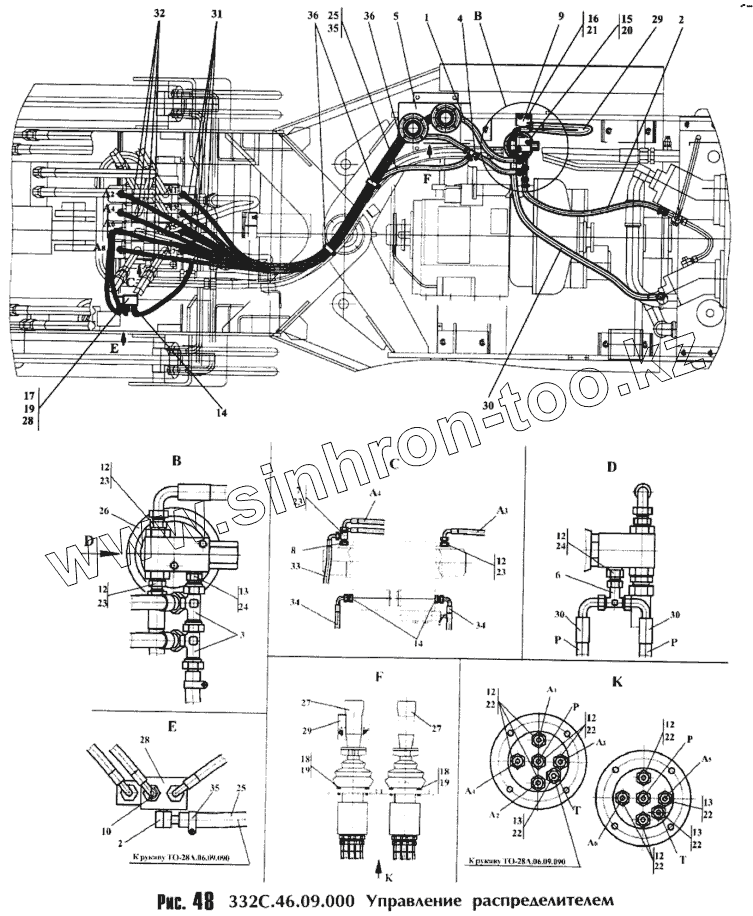 Каталог запасных частей к технике: Амкодор-342С. Управление распределителем 332С.46.09.000