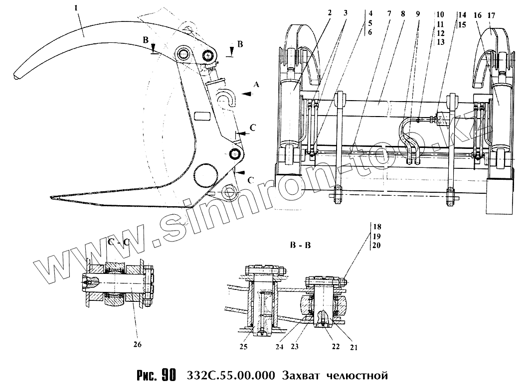 Каталог запасных частей к технике: Амкодор-342С. Захват челюстной 332С.55.00.000